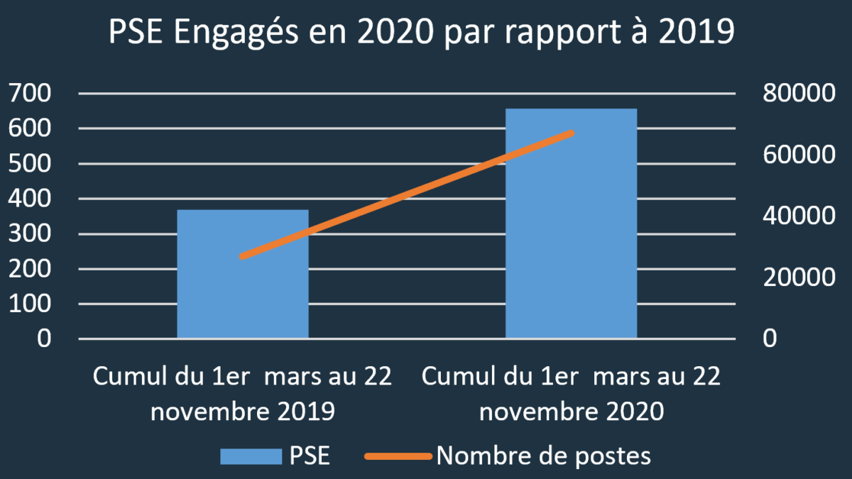 Ainsi, on remarquera que depuis le début de l’année et par rapport à 2019, le nombre de PSE a augmenté de 78% et, surtout, le nombre de postes menacés a bondit de près de 150%.